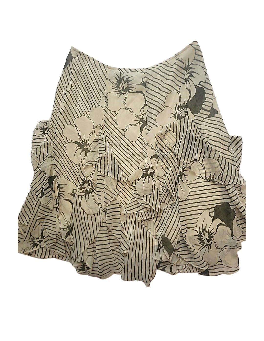 Lauren Ralph Lauren Striped Floral Crinkle Georgette Skirt Size 4