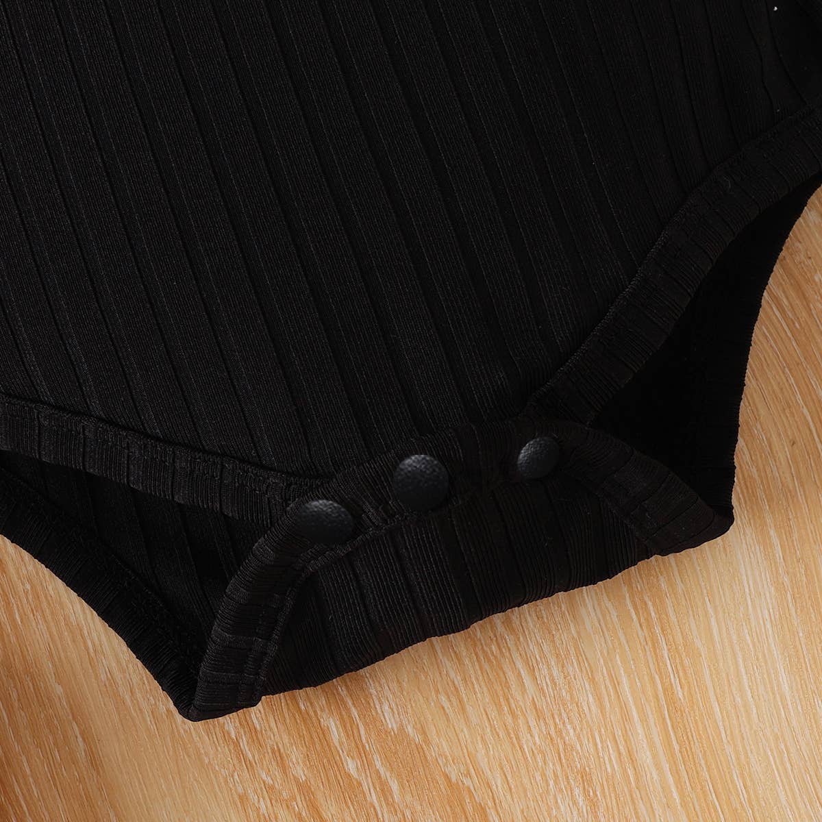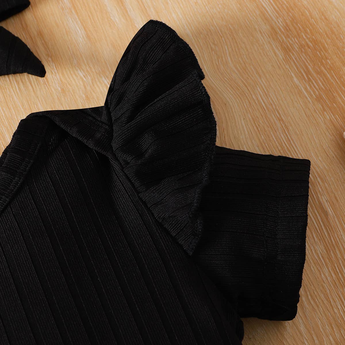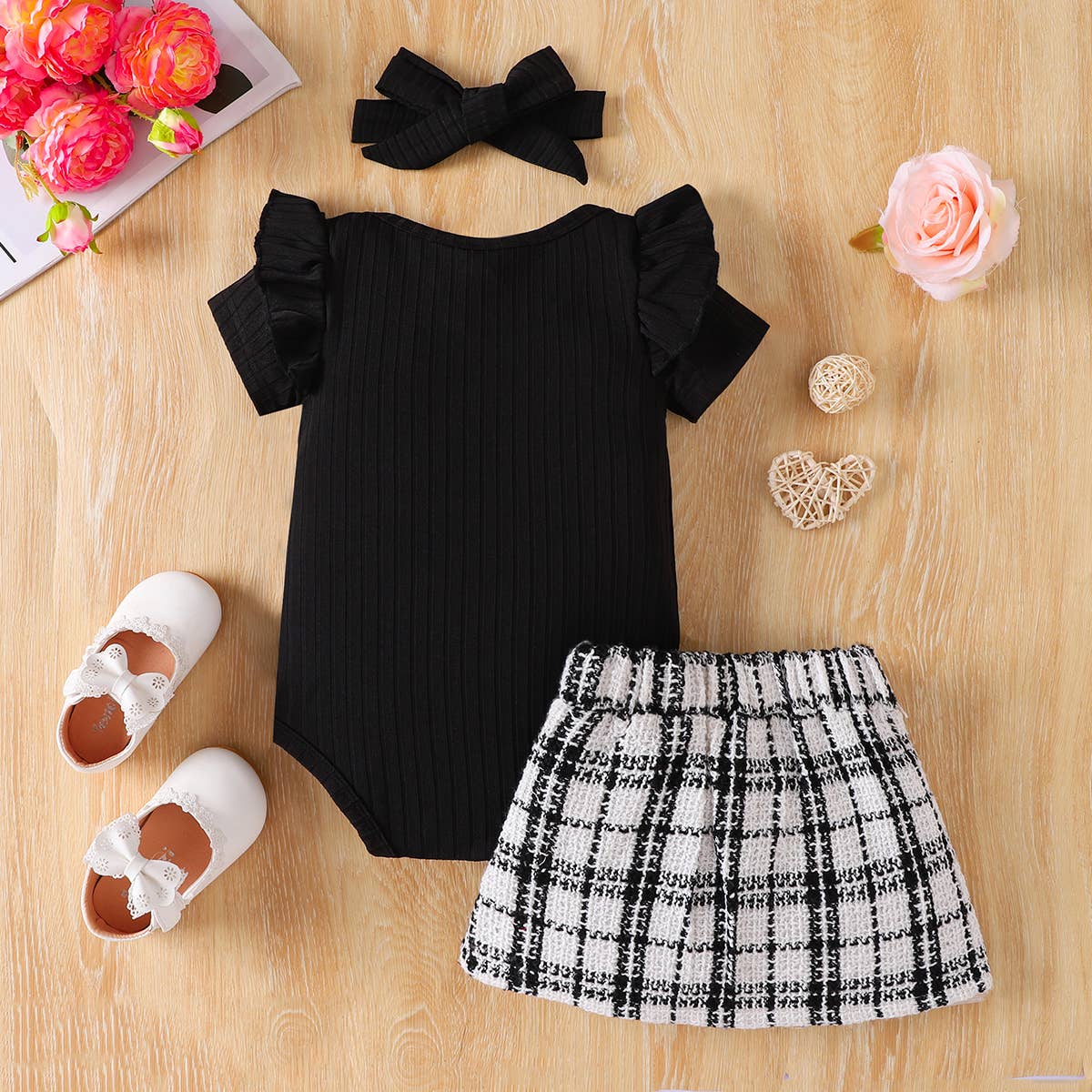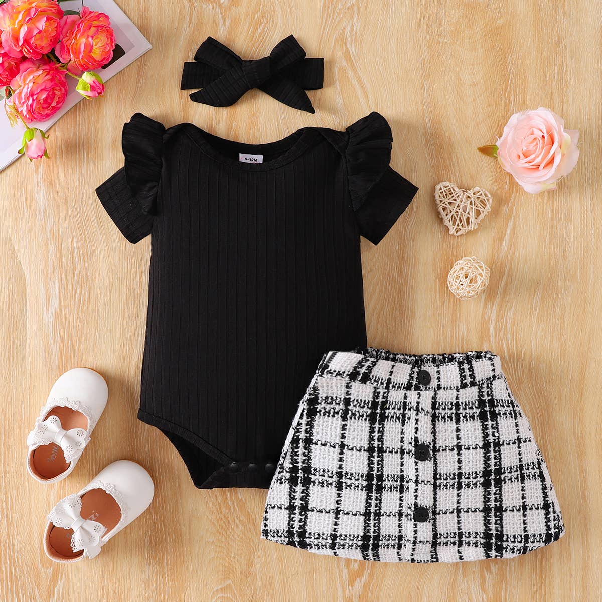 3pcs Baby Girl Black Romper Tweed Skirt & Headband Set